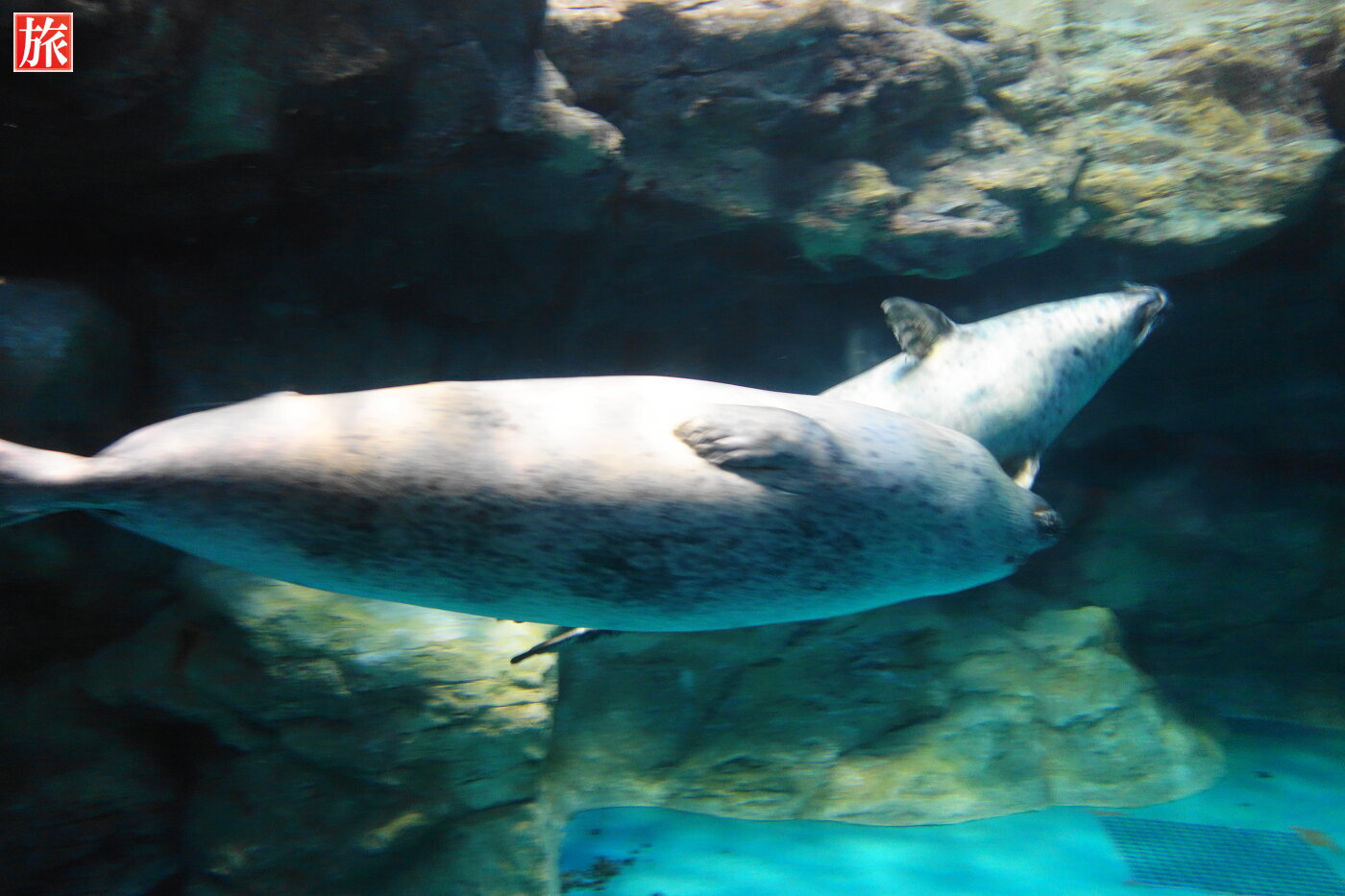 世界の海ゾーン2には水中を泳ぐエトピリカを観察できます。また、このゾーンいるゴマフアザラシ・タル君は、お得意の直立ポーズが「写真撮影に協力してくれるアザラシ」として「珍百景」に登録されています。どれがタル君かわかりませんでした(;^_^A