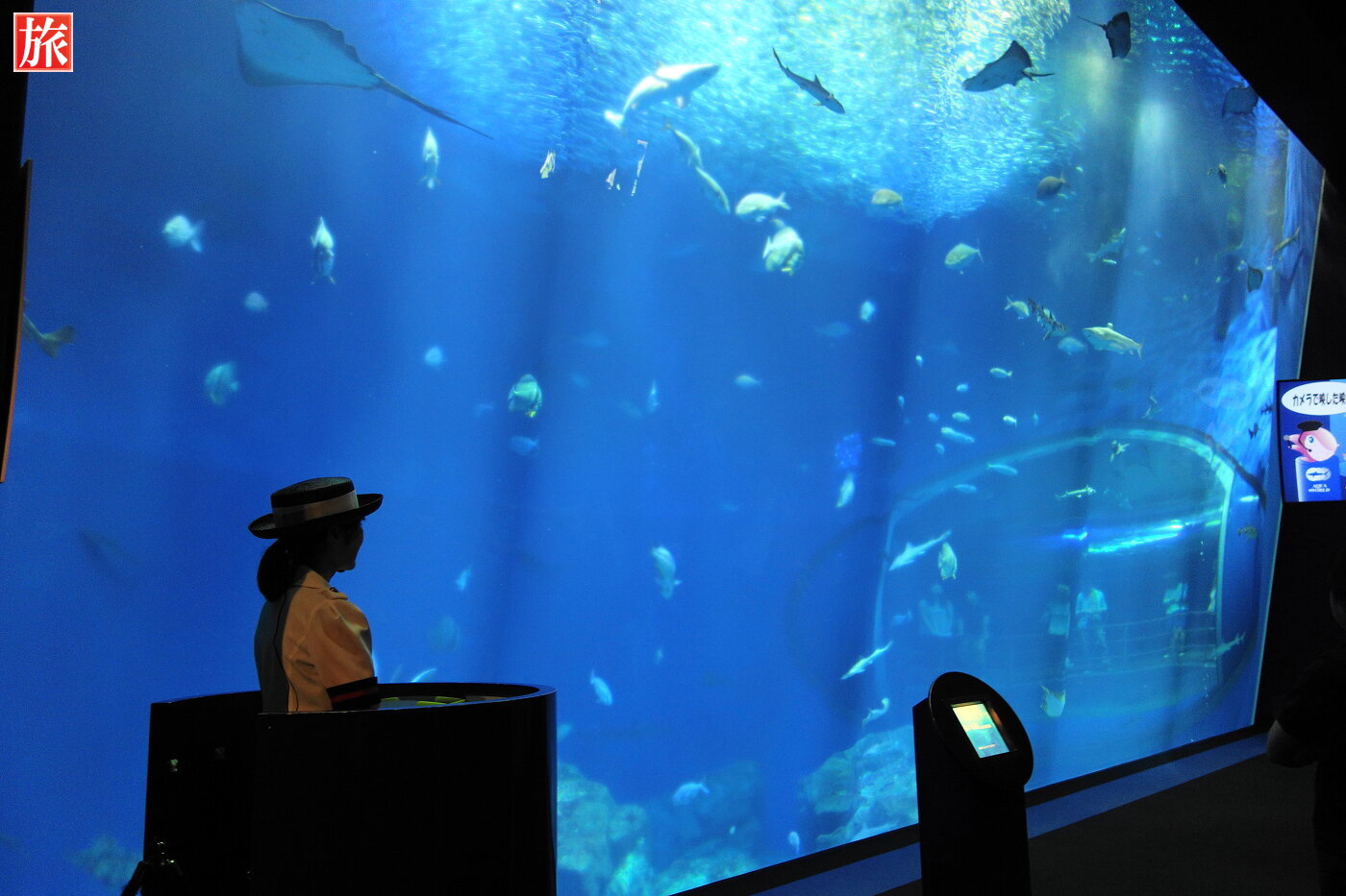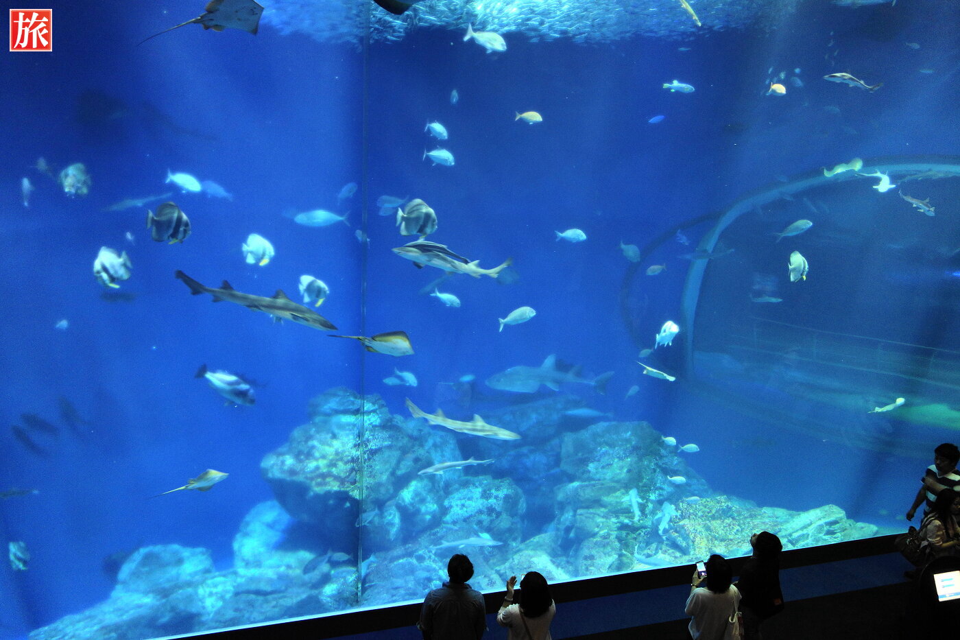 遊びながら楽しく学べる水族館。「出会いの海の大水槽」には80種2万匹の魚が泳ぐ。特にサメの展示種類数は日本一。