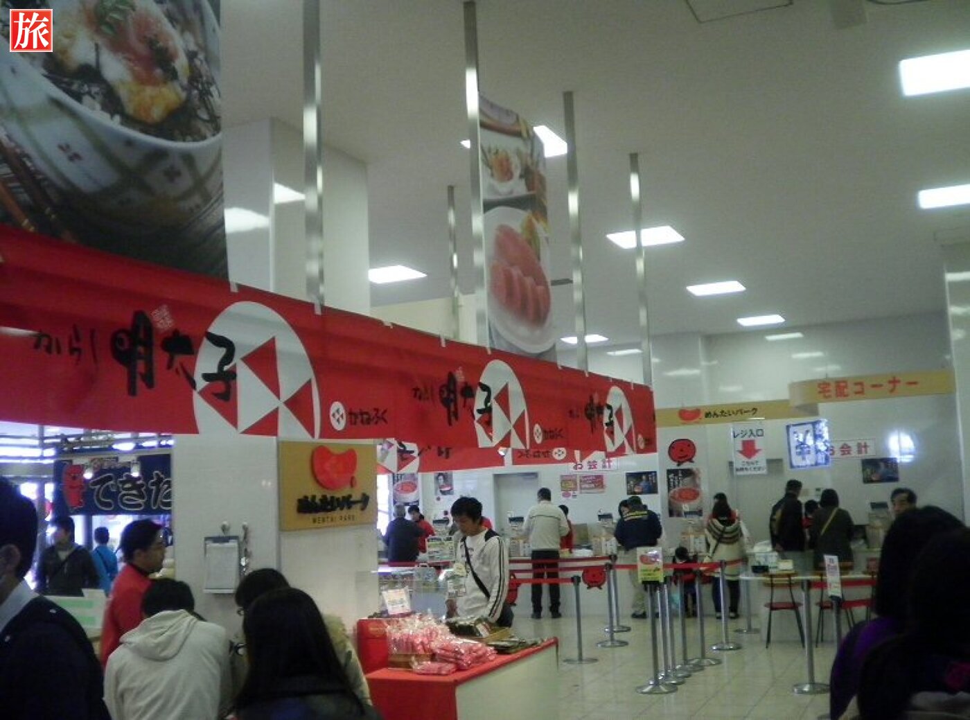 明太子の老舗、かねふくの明太子のテーマパークです。生産工場見学や出来立て明太子の直売を行っています。正月の買出しの為か、賑わっていました。工場見学は無料です。