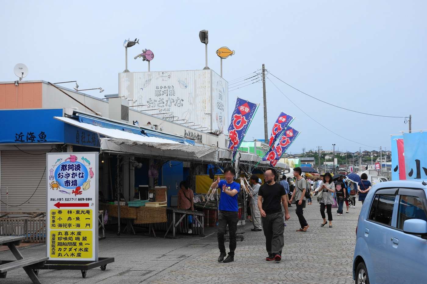 香林・東光庵・小舟・久楽・廻船問屋 魚一・海鮮すし 海花亭・海鮮処 海門・丸喜水産(那珂湊おさかな市場加盟店)、ヤマサ水産・魚問屋森田水産・くりたや(ひたちなか市観光協会加盟店)など寿司や海鮮丼などを味わえる飲食店や海産物店が並ぶ。