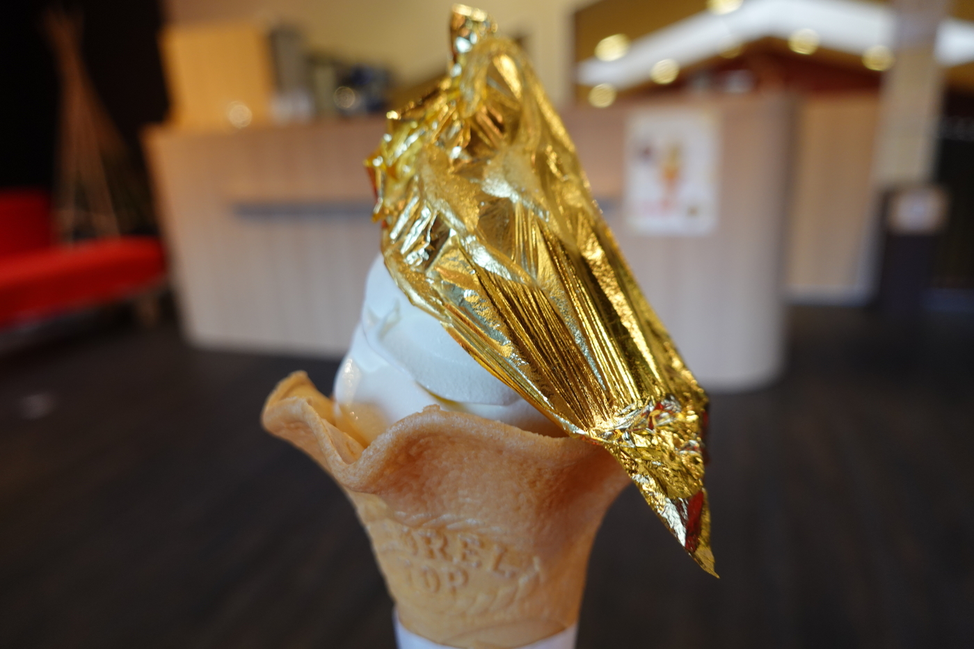 話題の金箔ソフトクリーム発祥の店に立ち寄り